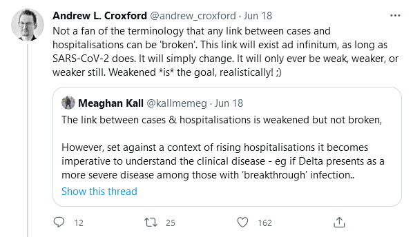 Well you and we know that if B.1.617.2 is twice as infectious as before, then we need at least half the population vaccinated just to get it to the level where we can control it with restrictions that worked before.