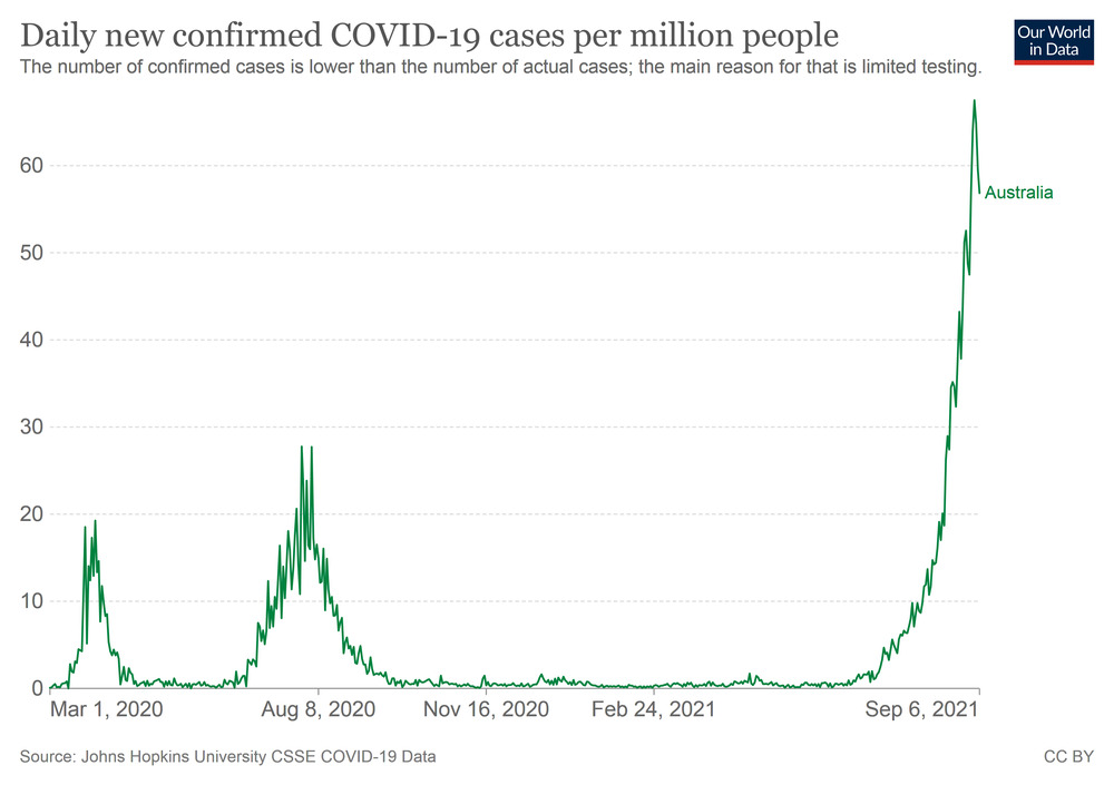 Biggest drop in Australia new cases in one day for more than a year. But that doesn’t mean that we’re over peak new cases for this wave yet.