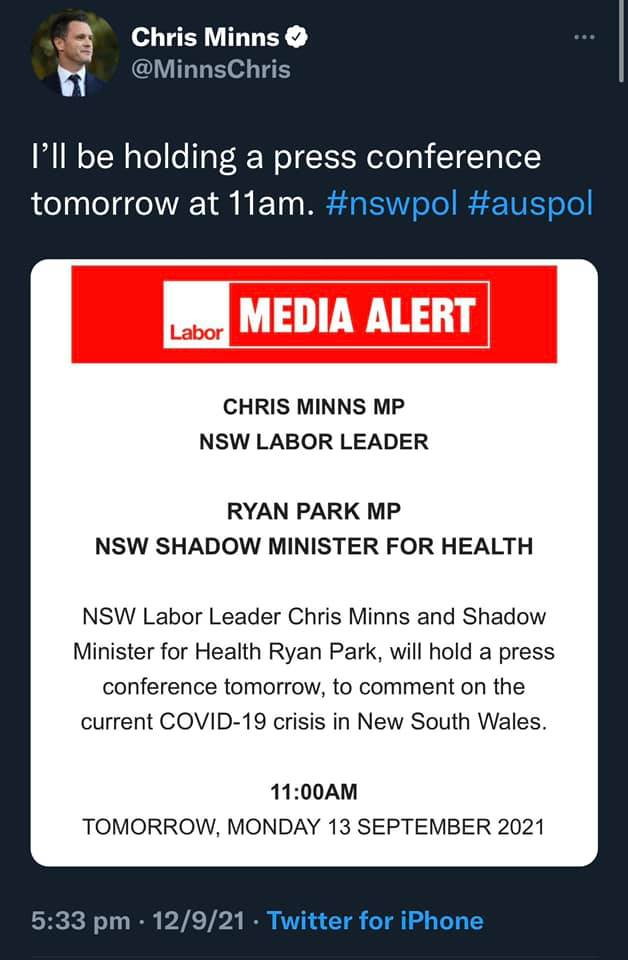 Why did Gladys decide to press conference today? There wasn’t really anything she said that was new – I heard her on the radio when I was coming back from Hamilton. Was it just because the NSW opposition leader and shadow health person had said they would press conference at 11.00am? (Did they do it?)
