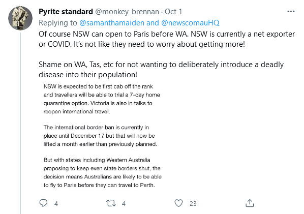 diddly-squat said:in all honestly, the one thing that both Qld and WA need is a good covid scare… probably the one thing that will increase vax rates