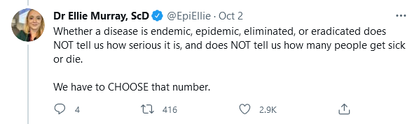 also your metrage may vary, most of you will understand it as “yeah powerful psychopaths, good, means we need to accept lots of disease, excellent” but we understand it as “experts are accepting defeat by powerful psychopaths, sad, failure to eradicate means failure of political or social will, unacceptable”