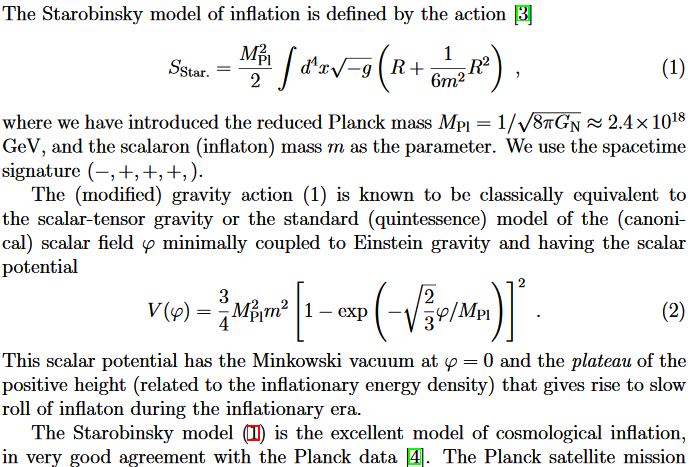 servations. Our approach to inflation is based on the Starobinsky model, the dark