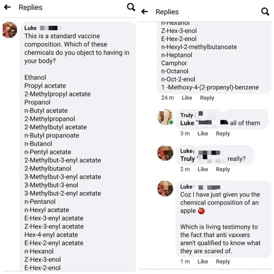 In group chats members discuss how to get their message out, often calling on them to bombard Government social media posts encouraging vaccinations, with anti-vax rhetoric.“”