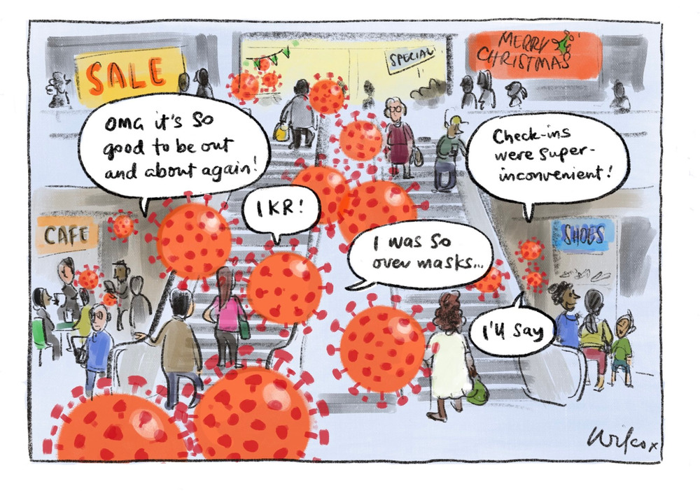 If you can’t get outside or improve ventilation, masks are also a good way to reduce transmission. University of Melbourne professor of epidemiology Tony Blakely said two people wearing masks reduced their chances of catching COVID-19 by more than 75 per cent. “If we’re going out for social events around Christmas time, keep the mask on as much as you can,” he said.