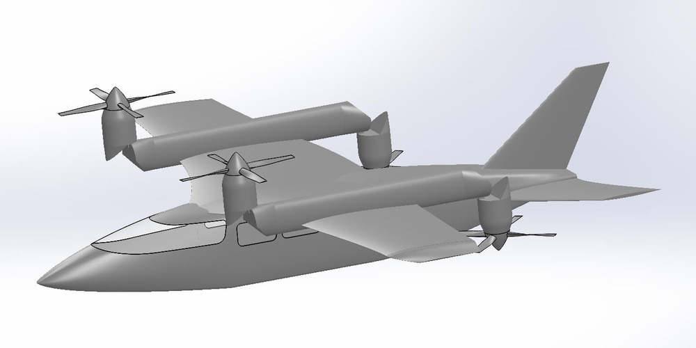 I’ve drawn up an EV aircraft. It’s intended to be an inter-city commuter of up to about 300 km range. Because it’s got to pick-up & drop-off passengers inside the city, it’s also a VTOL. And because it’s a VTOL it had to have a power-to-weight ratio of better than 1:1, and that’s why it has 3,000 hp. I reckon that’d be enough to know over the RR record.