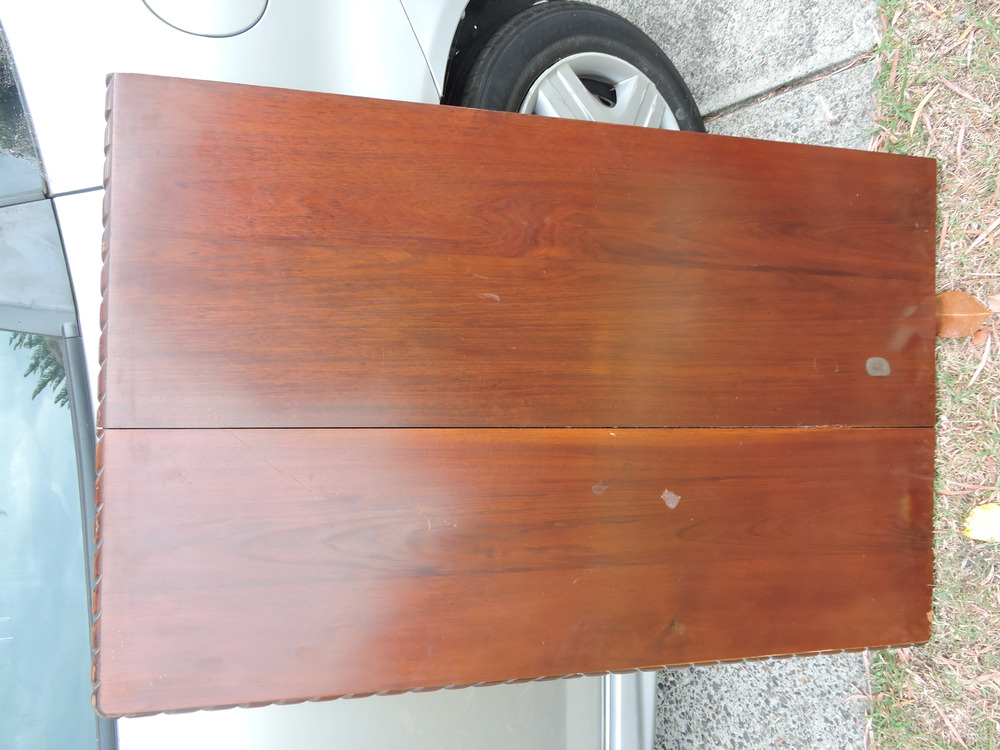 I have a rectangular table top, circa 1950s vintage, dark brown, extensible by adding in extra leaves.