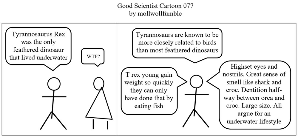 Think of T rex as a feathered carnivorous hippo, if that helps.
