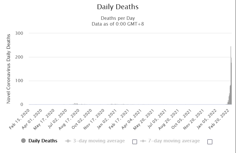 The startling rise in covid deaths for Hong Kong is worryingly close to China.