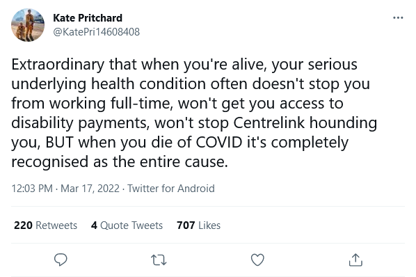 Well, COVID still seems to be killing 30-50 people a day in Australia. I guess that is around twice the rate of influenza.