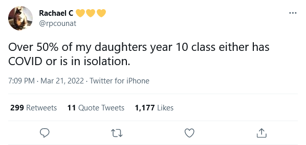 diddly-squat said:The population is almost entirely vaccinated and many people have also had breakthrough infections; moving to a model of personal responsibility over a state sanctioned model of test and isolate is, IMO, totally reasonable.