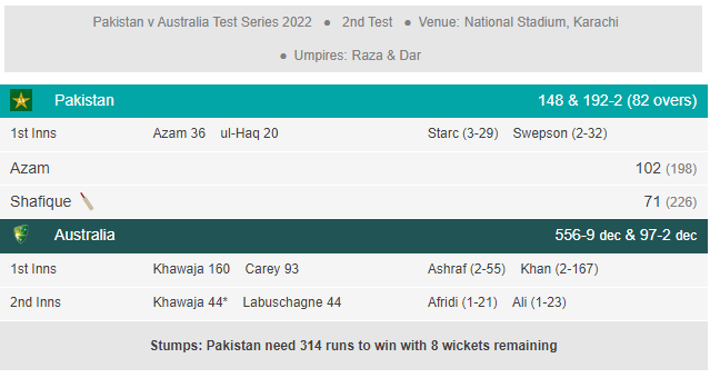 Ah well. Time has expired, so it is a draw. Well done Pakistan for saving it with a great second ininngs after their dismal effort in the first.