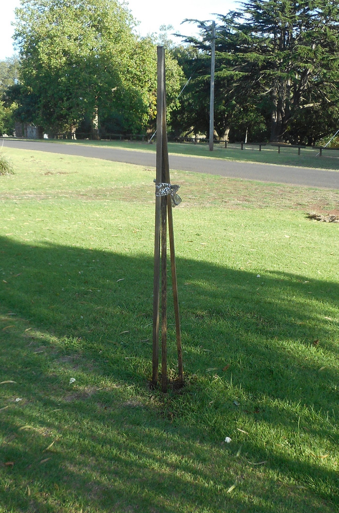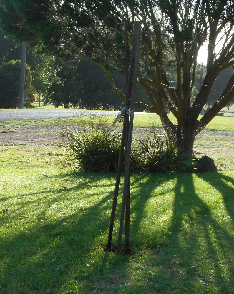 In case anyone here in town has missed the memo about how mad the woman at number 85 is, I have now cleared the couch grass back a bit and marked the plant in the nature strip. There are quite a number of them around that bit of grass. The one marked is the one I pulled the piece off yesterday to photograph. It’s got another flower stem with a flower almost out and a couple of buds. I’ll watch it and see what the seeds are like when they form. In the meantime, I hope this is obvious enough for the postie not to run into the stakes. Mr buffy has been advised that mowing it before I get the seeds is inadvisable.