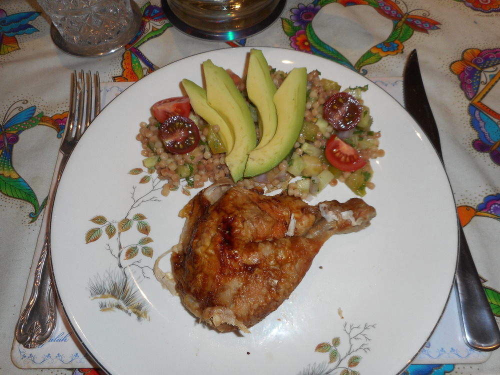 mini boneless chicken roast, mashed mixed veges and taters with a drizzle of gravy for din dins here … not too bad at all.