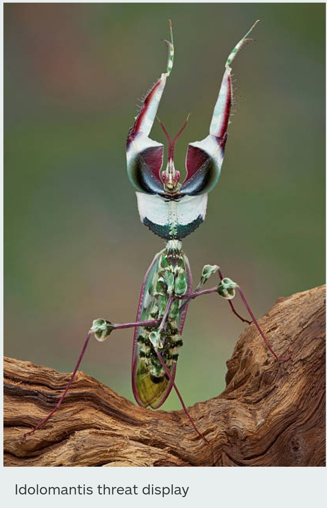 I’d be afraid of an insect with only 3 legs left still employing a threat display too…