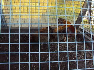 These 3 where allready in there in a small pen that only covers 1m2 of the garden beds. Breeding trio of Blue Partridge (Blue Cock bird and 2 partridge females with thicker Pencilling to help bring the blue out).