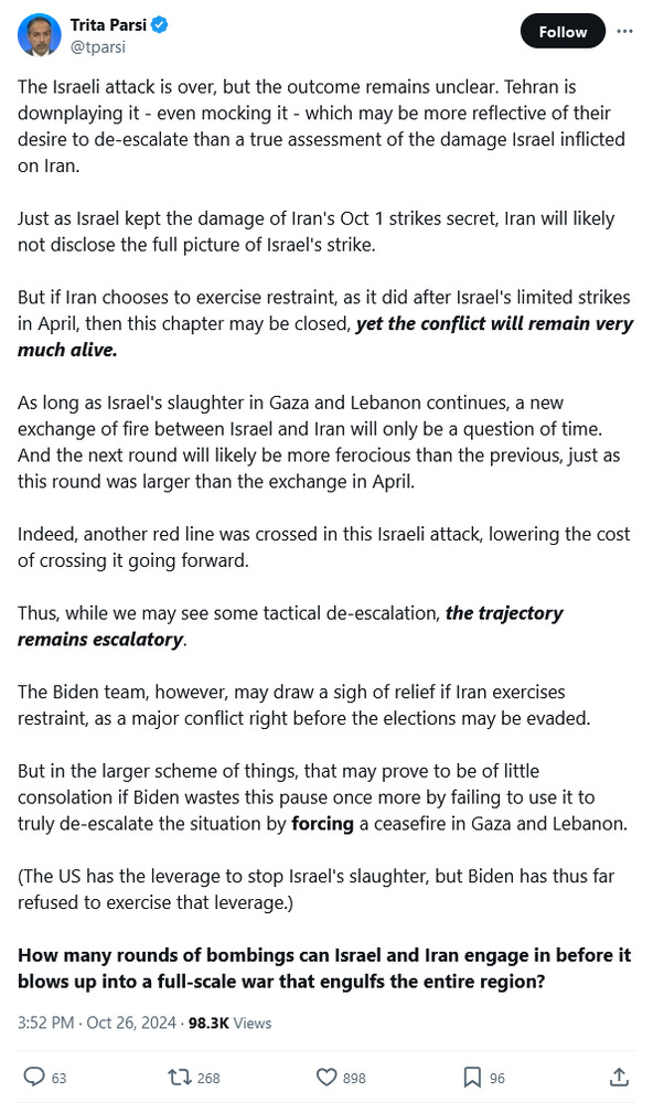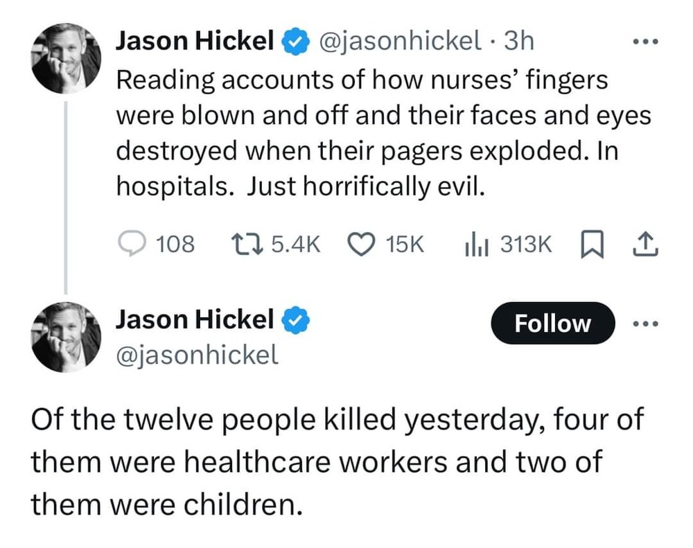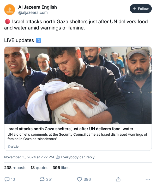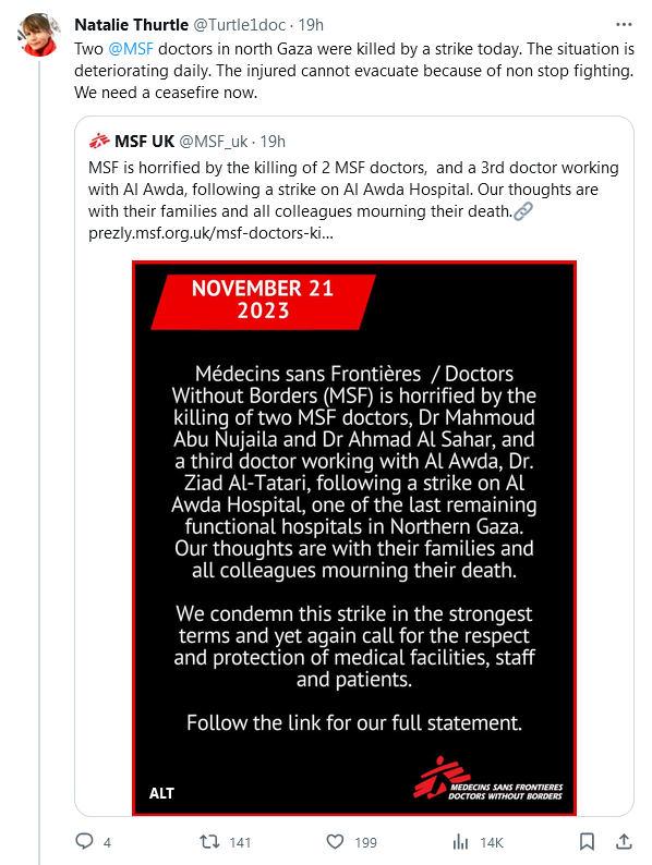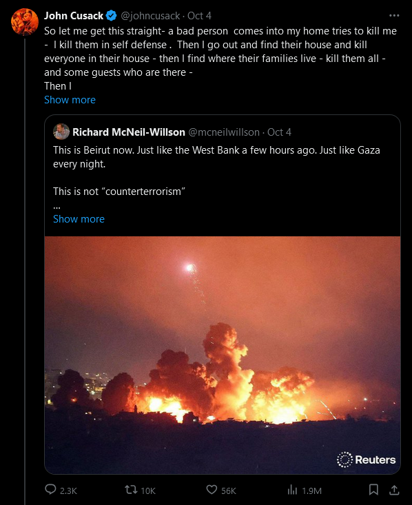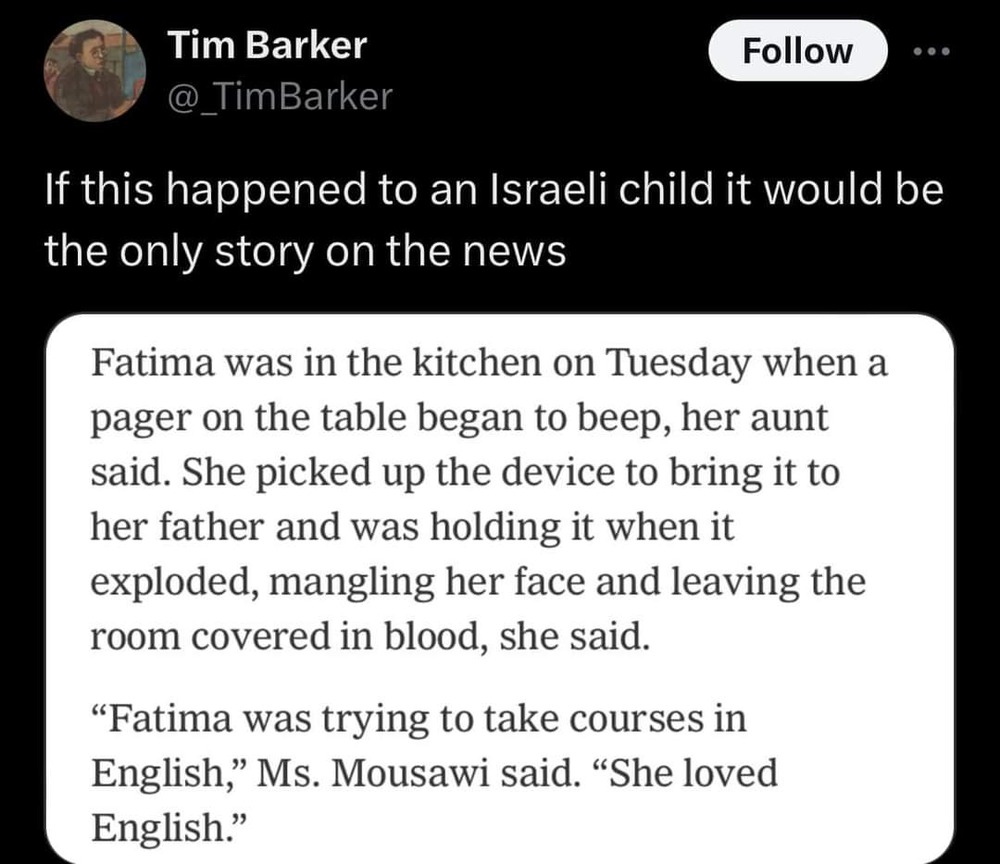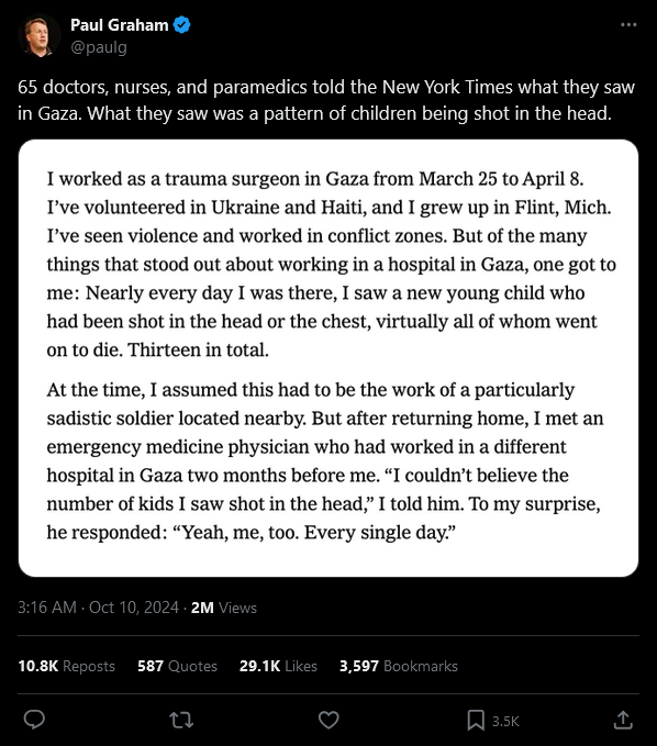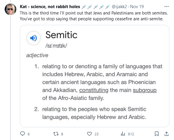 I appreciate the juxtaposition you’re making there but one distinction is that the Israeli hostages held by Hamas are indisputably civilians while those Gazans in Israeli jails are probably held captive under the laws of war. That is not to say there are not hundreds of thousands of Gazans who wish their deceased relatives were lucky enough to be languishing in Israeli captivity.
