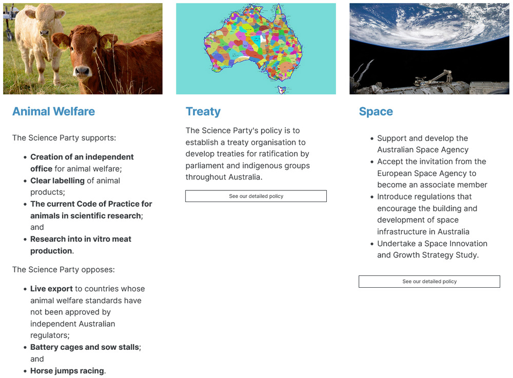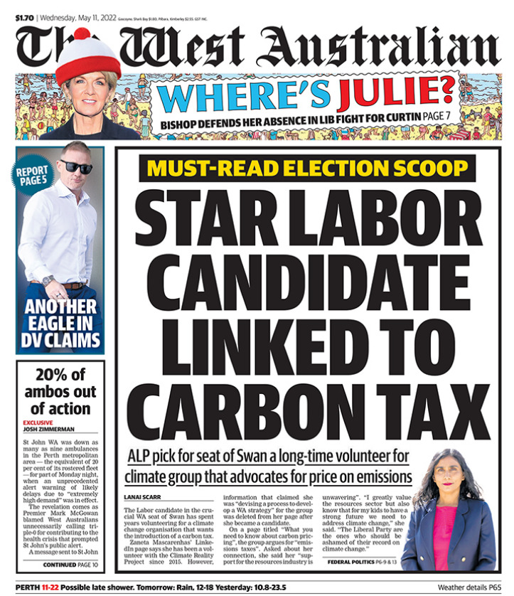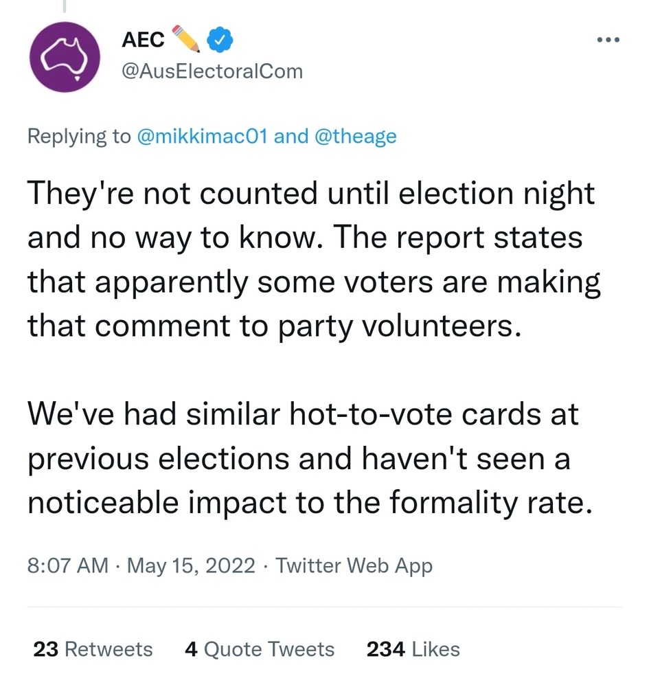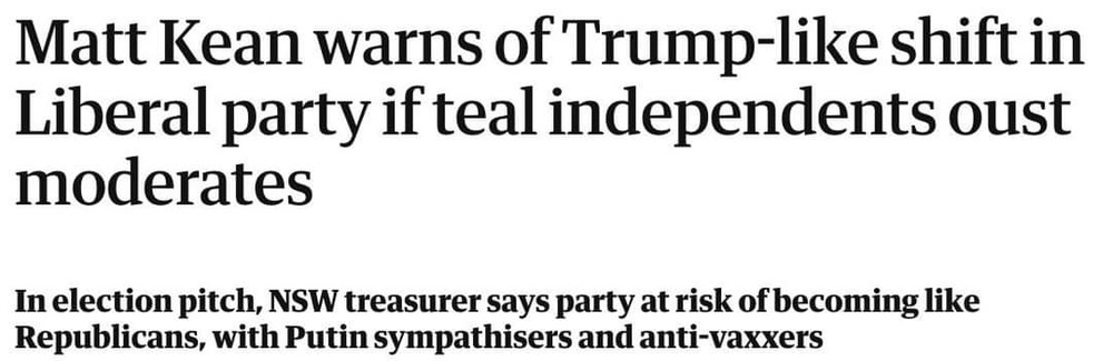 Also, I’m glad that there are a lot of things that are politically under or over the radar in Australia. The Libs aren’t to my taste but they aren’t running Republican style antivax or conspiracy theory campaigns. I’m not fearful that 3 more years of the Coalition will lead to an irrevocable erosion of checks and balances or civil liberties. The big wheel will roll on and eventually things will work out.