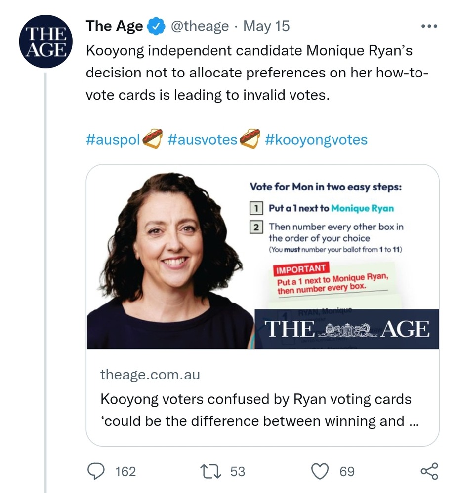 I just said no thanks, I’ve got my list and waved my A4 piece of paper with my Senate list on it. When I came out one of the HTV people said to me – I admire your preparedness. I told her no one tells me how to vote and never has. She seemed genuinely impressed that I’d thought about it before getting there. And I have no idea who she was spruiking for!
