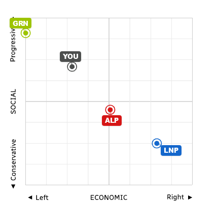 I’m just under GRN according to the ABC Vote Compass.