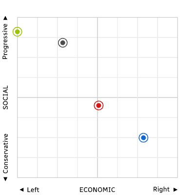 I did the vote compass & was on the centre line horizontally & a little below centre vertically.