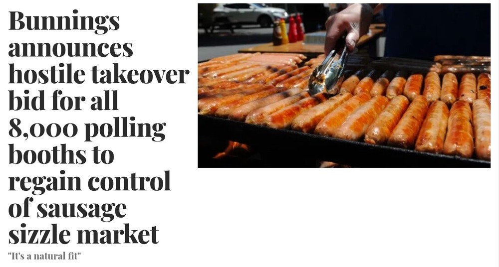‘That all Australian voters, wherever practical and possible, shall, on the day of an Australian Federal election, have the opportunity to purchase for such reasonable price as is in line with the prevailing economic circumstances, as many Democracy Sausages (with optional trimmings) as they reasonably desire’.