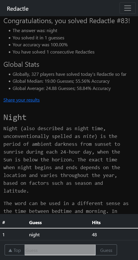 i didn’t stay awake for redactle last night. i haven’t been able to access it all day.