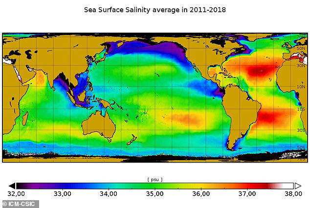 To carry out the study, researchers at the Institut de Ciències del Mar (ICM-CSIC) in Barcelona analysed ocean surface salinity data – which is measured by satellites.