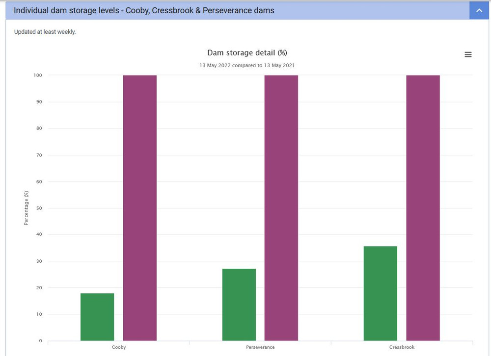 View historical dam levels 24, 276 ML 22, 409 ML 92.3% 4:06am 14/05/2022