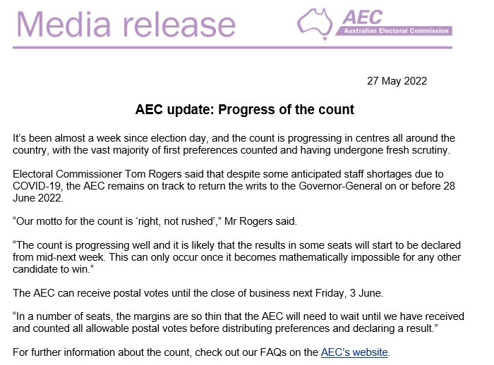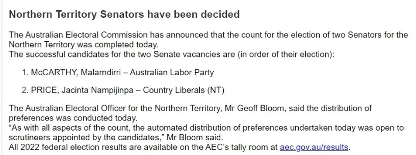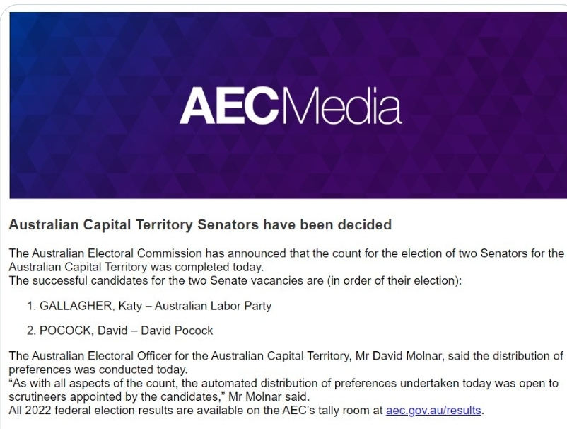 The don’t do the tele broadcasts from the tally room in Canberra any more.