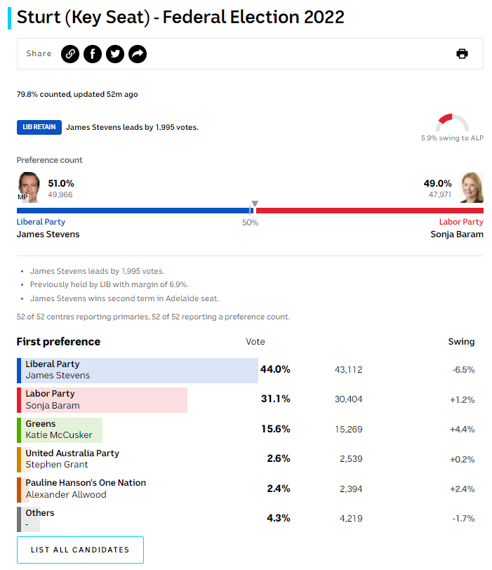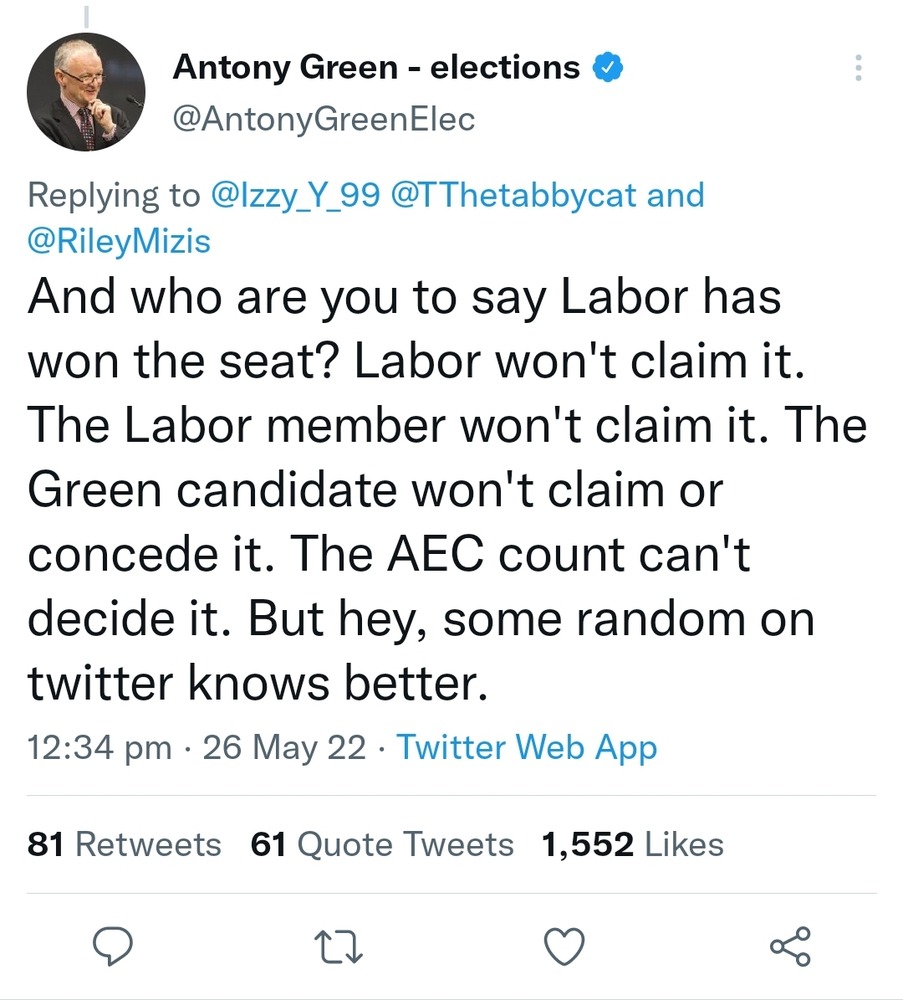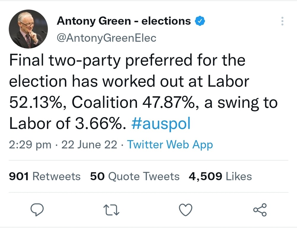 Mark The Ballot (Bryan Palmer) precisely predicted 77 ALP seats as the most likely outcome so good on him.