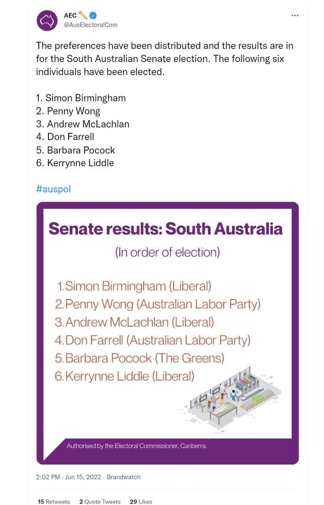 12 Libs elected (including CLP and LNP). This brings them to 27.
