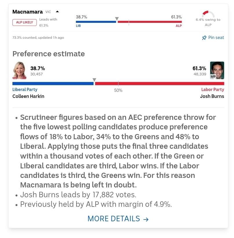 precisely predicted 77 ALP seats as the most likely outcome so good