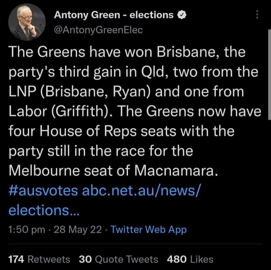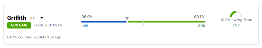 3 Nats elected (including LNP) bringing them to 5. They actually increased their representation by 1 this year.