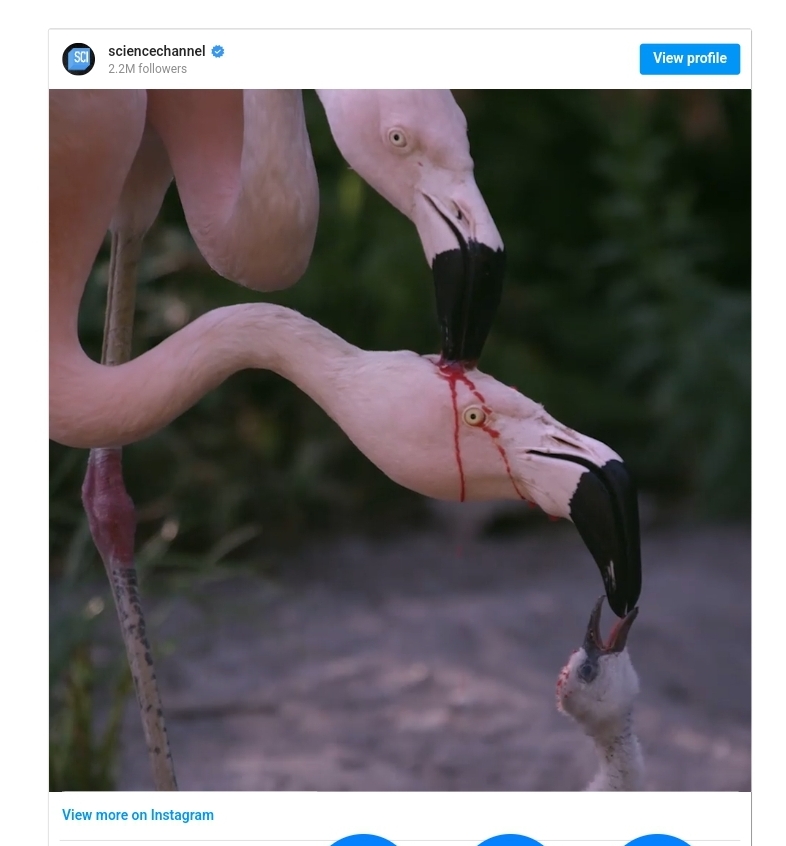 Actually it’s because crop milk is not really “milk” of course.Also, the flamingo version contains red pigments derived from their diet of algae and crustaceans.
