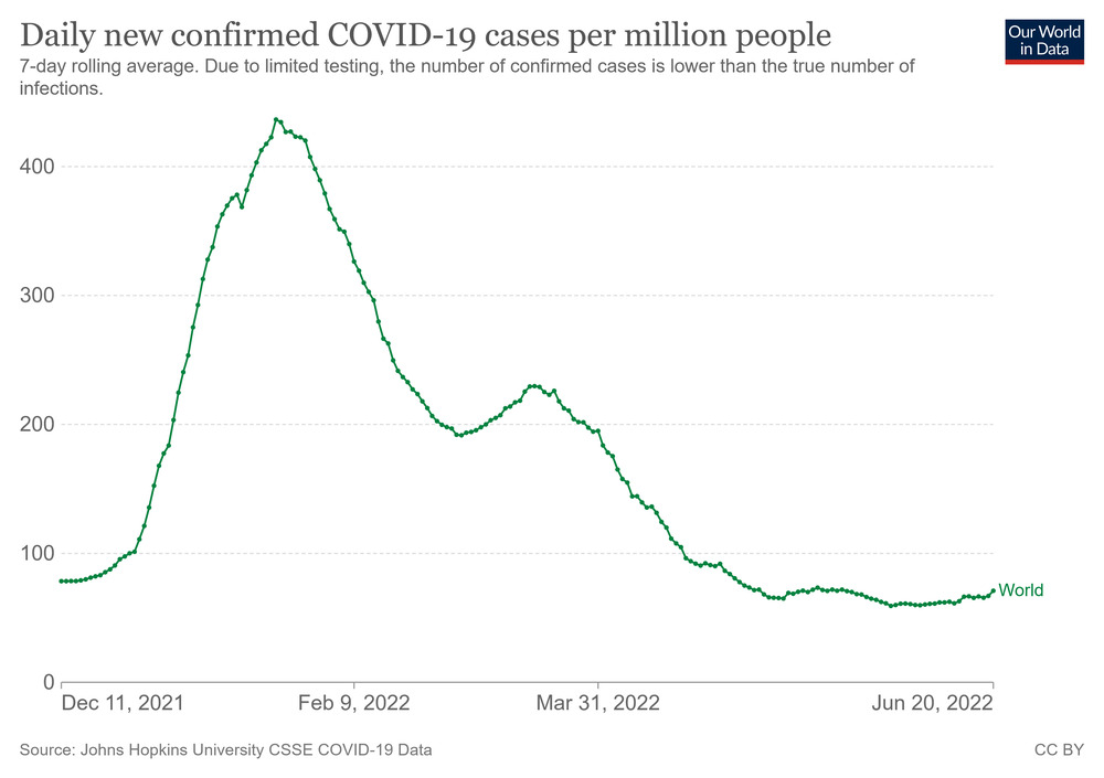 Global numbers seeing a slight lift but they are nearly meaningless now since many countries are not comprehensively testing even likely covid decedents