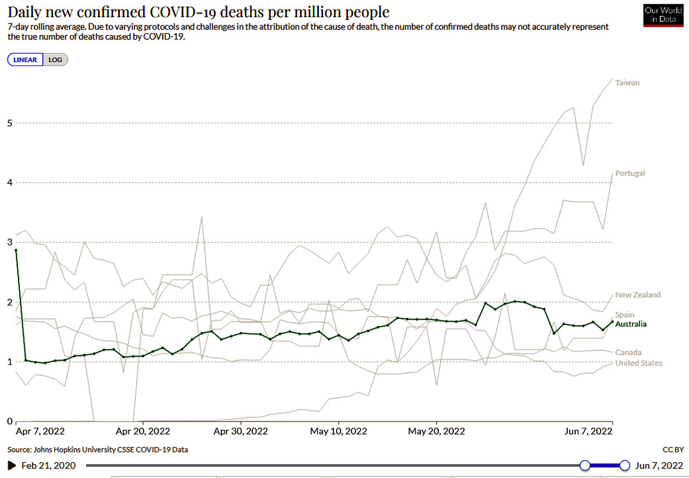 Top countries for Covid deaths. Australian Covid is not getting significantly better in terms of number of deaths..