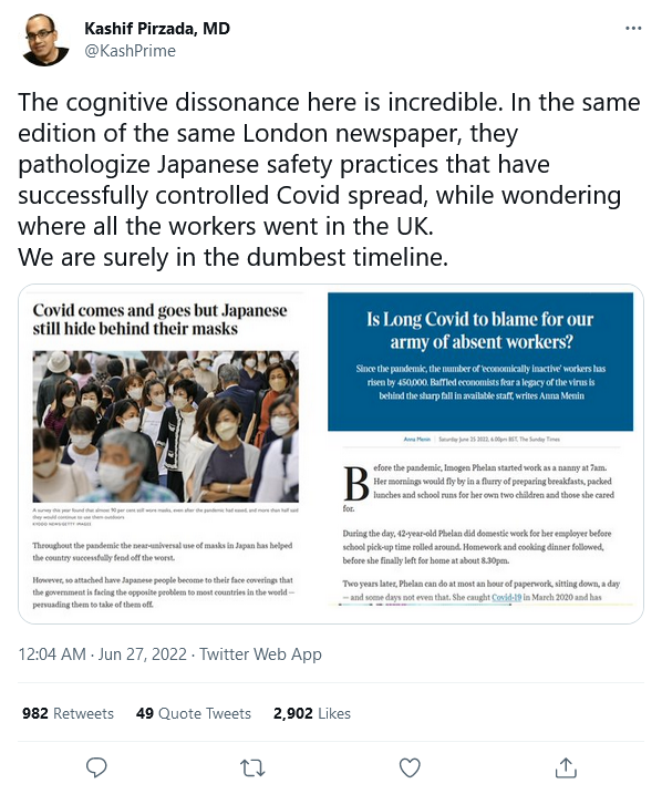 I notice the propaganda machine re high plague numbers, they tie (destroy) the proposition of simple prophylaxis remedy into talk of mandated masks and lockdowns, with lockdowns in one example I was reading shortly ago