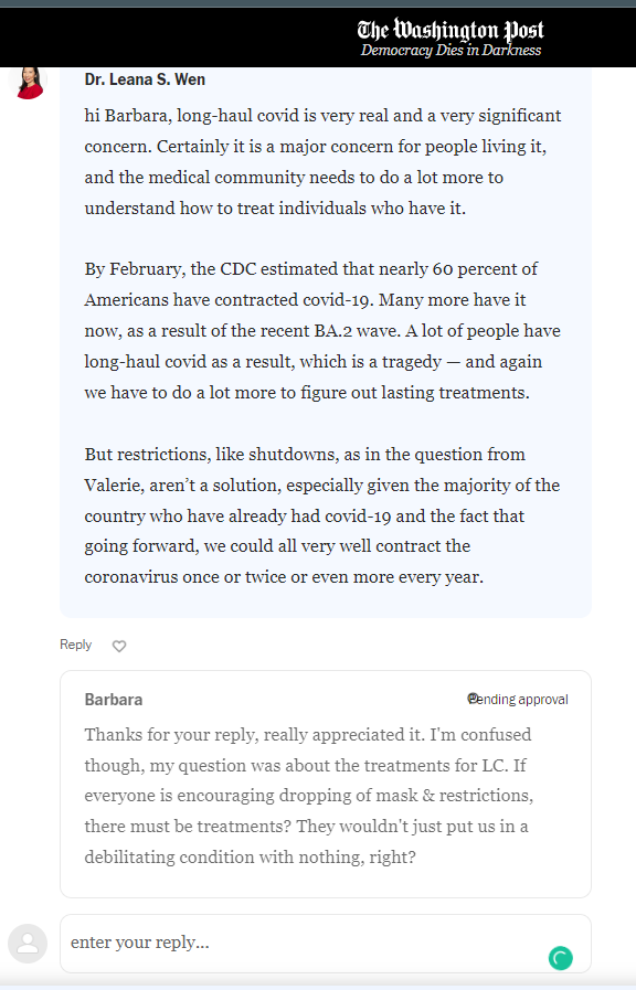 I expect, probably of most people that know of the term long covid, that whatever the notion formed it contributes worse than nothing to their understanding of biology