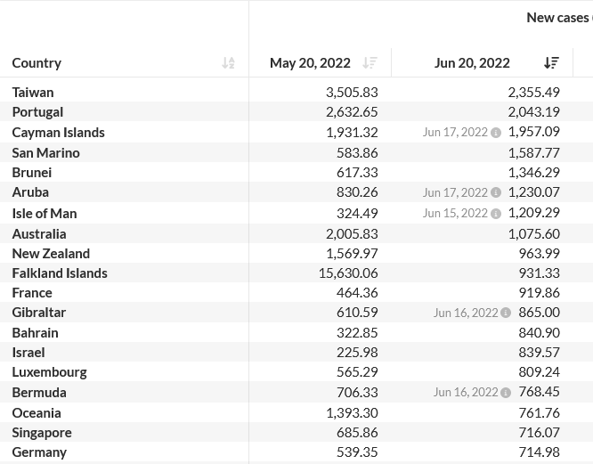 Taiwan and Portugal are both showing rapidly rising death rates. But are peaking in terms of number of new cases.