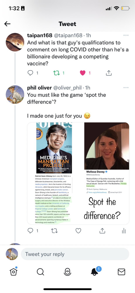 Yes, I’ve gone through the news headlines now and he’s taking antivirals I think. My source was unreliable…
