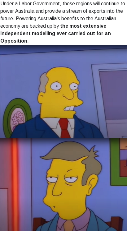 Although those are reasonable follow up questions, and I do think it is good to keep these fellows on their toes so they stay across their portfolios, I did think it was a reasonable and apposite response to the 1970s style thought-terminating-cliches the opposition is still coming out with.