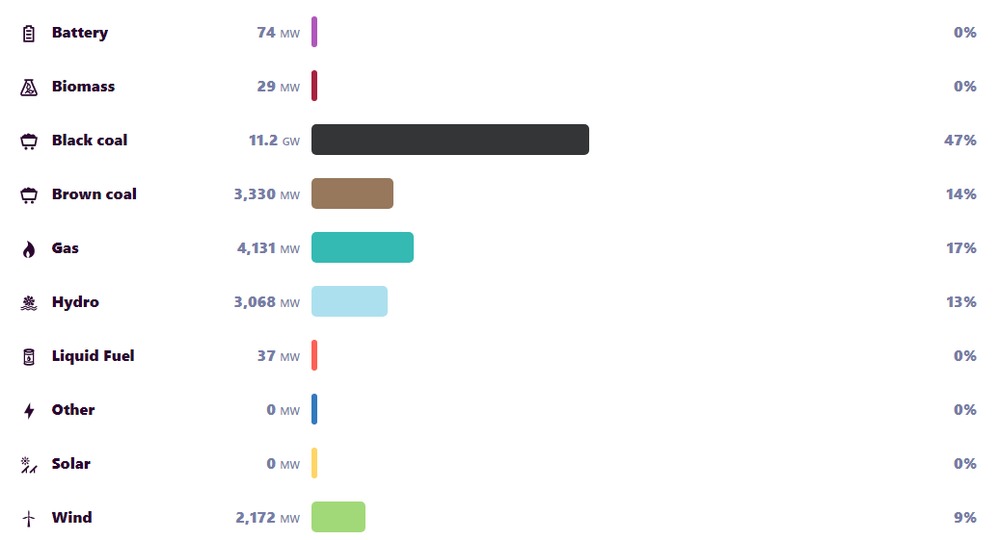 This is the fuel mix right at the moment for the National Grid – Excluding WA + NT.