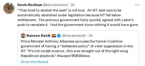 In Bowman, the non-factional Laming has been replaced by Henry Pike: I don’t know about him but he had the backing of Amanda Stoker of the Far Right. In Flinders, it appears an even trade as outgoing Kevin Andrews and incoming Zoe McKenzie are both Centre-Right.