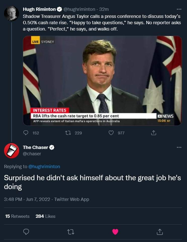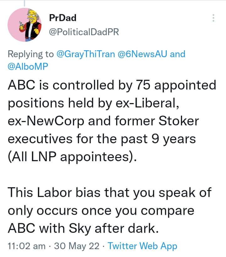 sarahs mum said:The rest of the media is also a bit right wing. They spend a good amount of time yelling at the ABC for not being right wing enough. Co media should be only right wing.