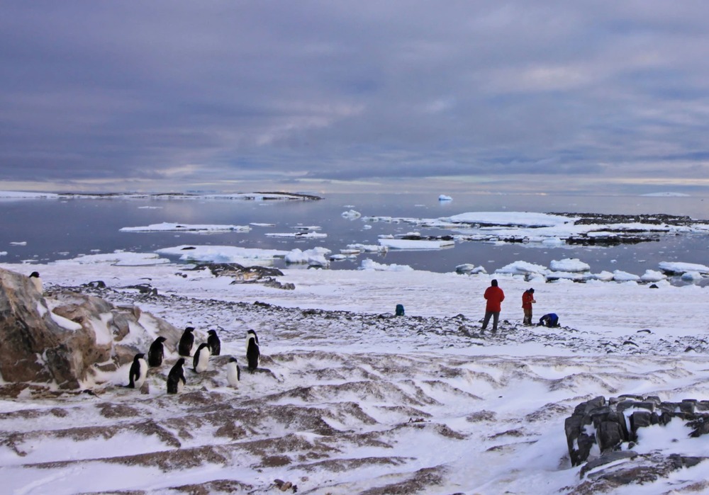 Researchers on Antarctica’s Edwards Island beach collect sea shells and penguin bones