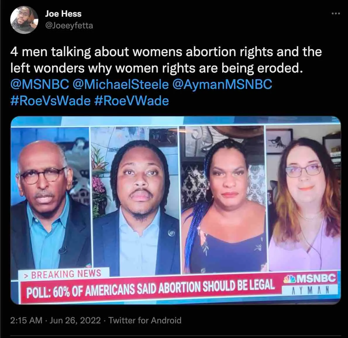 “If not for men, we would have none of these laws. We would have none of the inequality in terms of gender rights and this onslaught on abortion rights. None of this would be happening.“We did not do this to ourselves. And I would take it personally, what I’m saying, as an accusation; as a come-to-Jesus moment.
