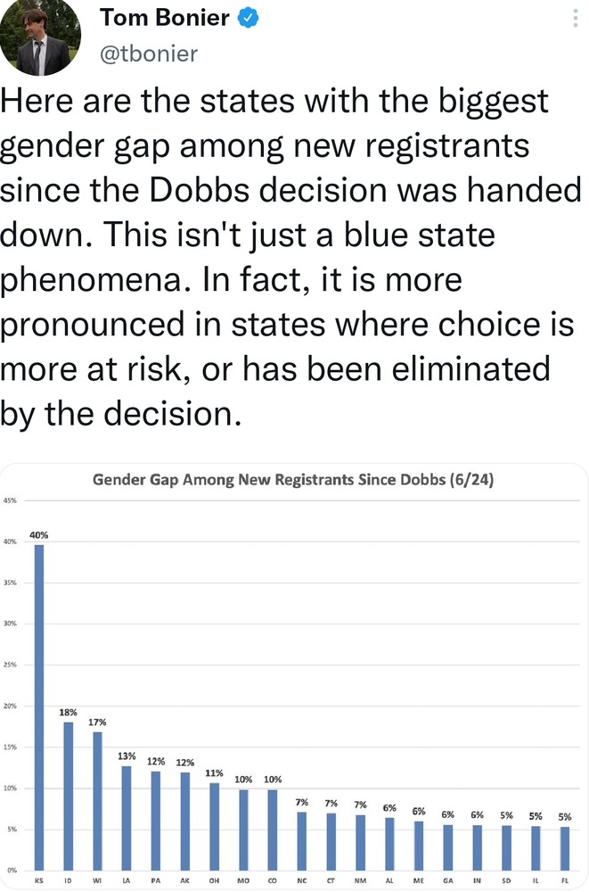 Another thing occurs to me. With our latest election there was a women’s movement in the voting patterns. I wonder if this Roe v Wade thing might motivate a lot of women to actually get out and vote in the upcoming US elections. Apparently there is quite widespread opinion that abortion should be available.