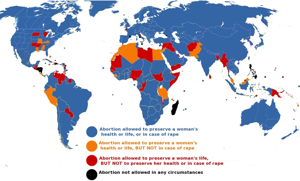 Interestingly, Oklahoma, Arkansas, South Dakota have more restrictive abortion laws than Saudi Arabia or Iran in that they do not allow maternal health as a valid reason for abortion. Someone in Tulsa whose health might be threatened by childbirth could fly to Riyadh or Tehran to get an abortion.