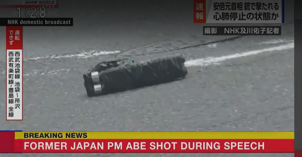 It did occur to me that his quest to change Japan’s pacifist constitution could have pissed off some peacenik but to then employ a weapon seemed a little too ironic.