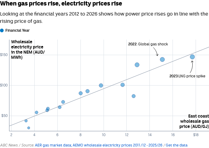Last week, Victoria’s default market offer was announced, with prices falling by 3 per cent. The drop in electricity prices will offer some reprieve after the shock of 20 per cent increases after the Russian invasion of Ukraine. “We’ve got a lot more renewables in the system than what we had in 2022, and we’ve also got obviously a lot more battery storage,” Ms Savage told the ABC’s Climate team last week. “We have seen over this last year wholesale prices come down so much that even though they’ve gone up a little bit in the light of the situation in the Gulf, they’re still not above where they were, say, a year ago.”
